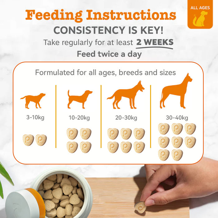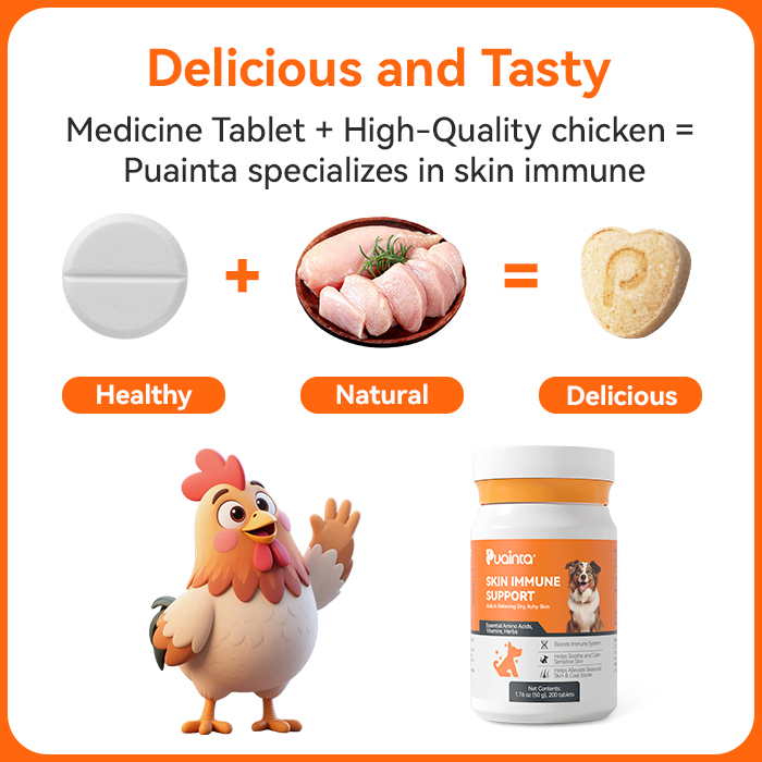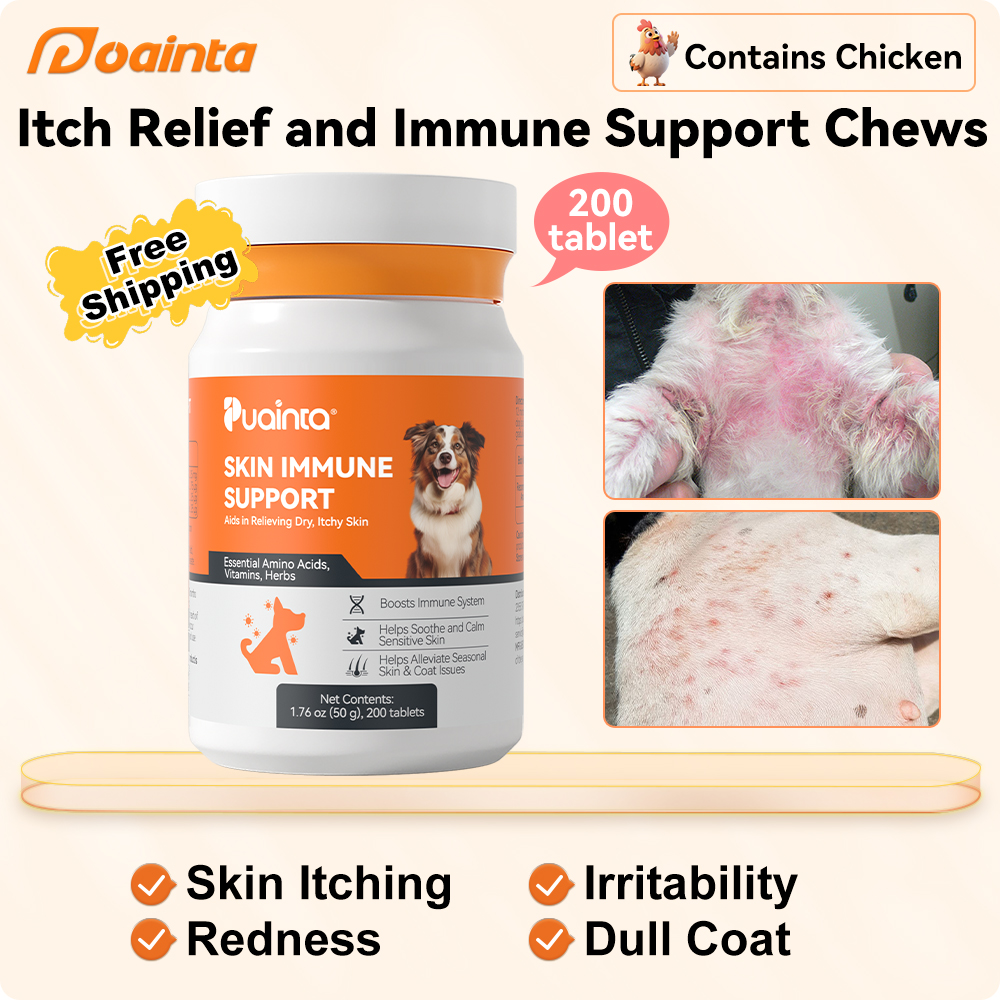 Triple-Action Chewable Tablets: Provides rapid relief from itching and skin redness, delivers key nutrients, and strengthens the immune system from within.