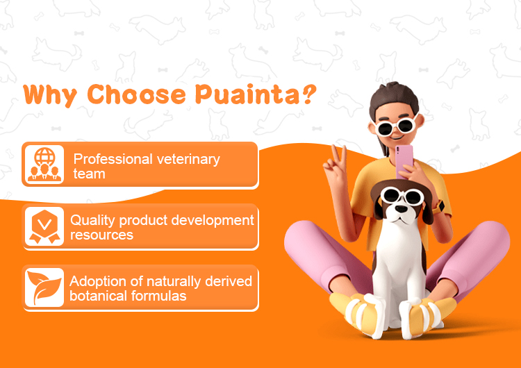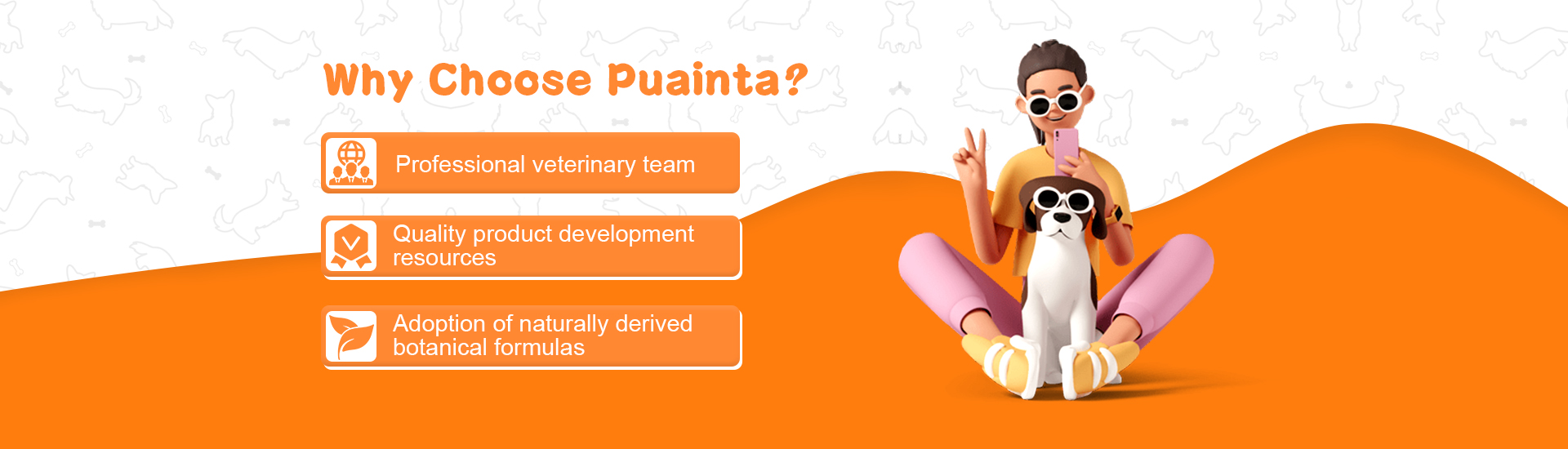 Puainta's product development process is driven by thorough research, selecting premium ingredients backed by veterinary science and rigorous testing. Puainta prioritizes innovation aimed at enhancing pet well-being, offering a range of supplements and grooming products tailored to promote happier, healthier lives for dogs and cats of all stages of life.