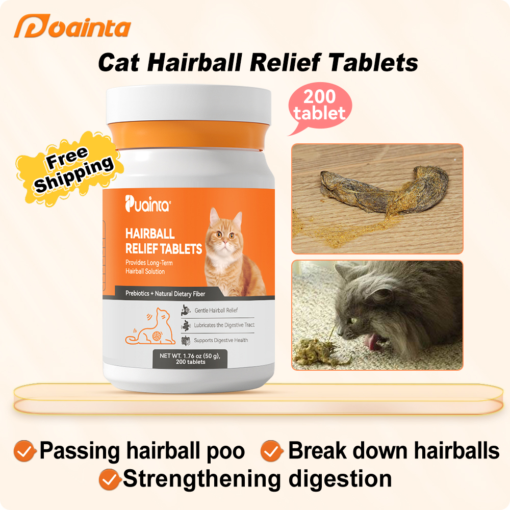If your cat's having trouble with their digestion and you hate having to clean hairballs all over your house, then look no further because our Hairball Relief Tablets are here with their complete nutrients and vitamins to give your cat a healthier digestive system and better fur! With the high fiber ingredients in our tablets, it helps to move the hair through the digestive tract, eliminate potential hairballs formed in your cat's stomach.